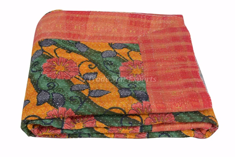 غطاء السرير القطن المفرش الفراش اليدوية خمر الجملة الهندي kantha لحاف-لحاف-معرف المنتج