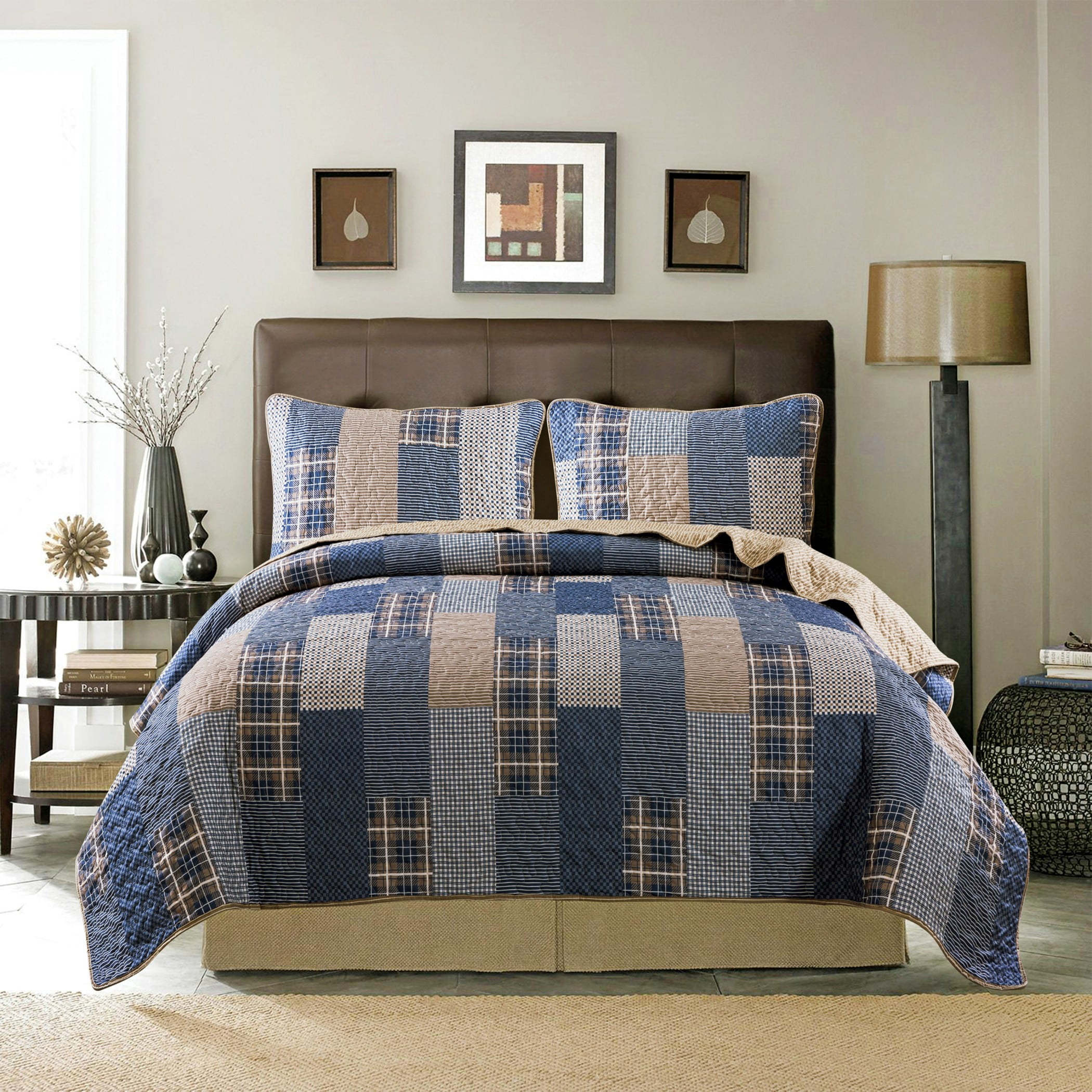 Rustic Farmhouse Patchwork Full/Queen 3-Piece Quilt and Sham Bedding Set Coverlet Bedspread
