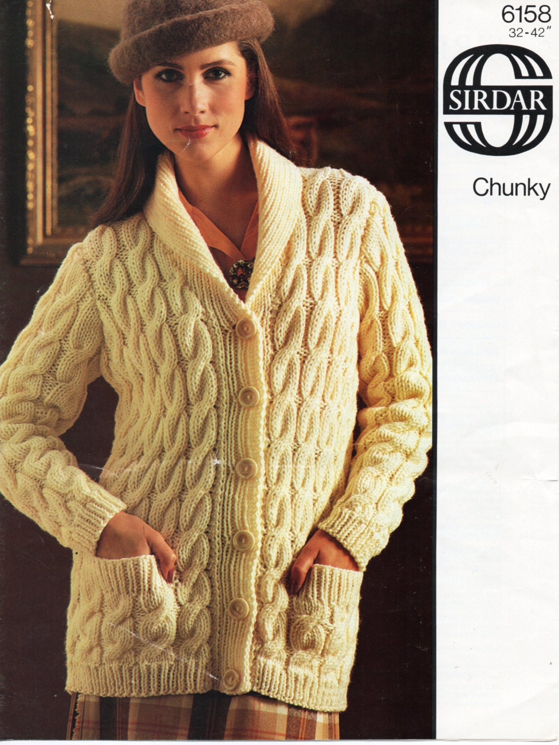Womens chunky cable cardigan knitting pattern pdf download Etsy