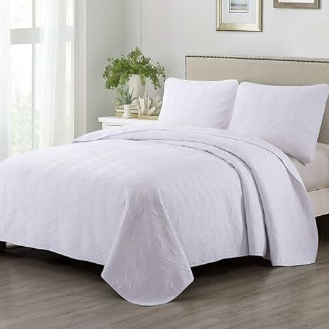 CHAUSUB White Embroidery Quilt Set 3PCS Washed Cotton Quilts SOFT Quilted Bedspread Bed Cover