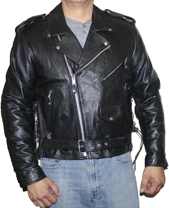 Men's Genuine Buffalo Leather Classic Motorcycle Jacket with Side Laces