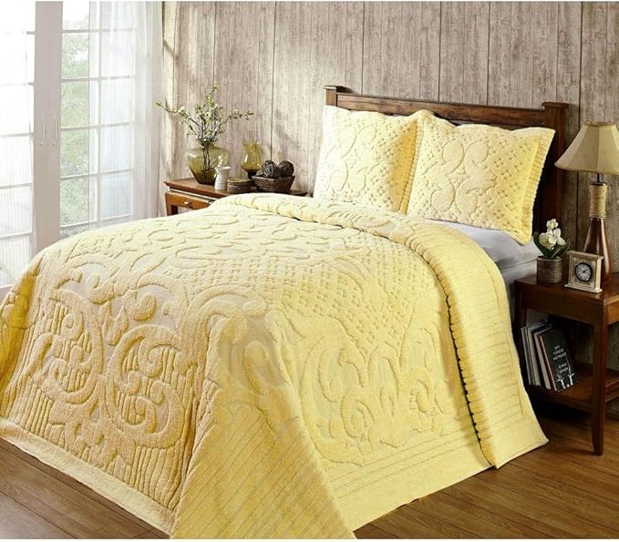 Amazon.com: 1 Piece Oversized Yellow Chenille Bedspread Elegant Solid