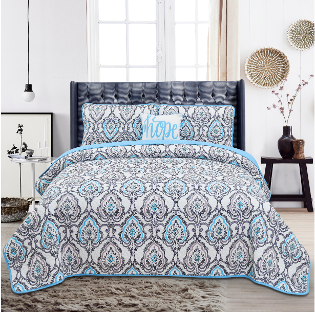 3 Piece Printed Lightweight Bedding Quilt Set- Quilt And 2 Shams, Soft & Lightweight King