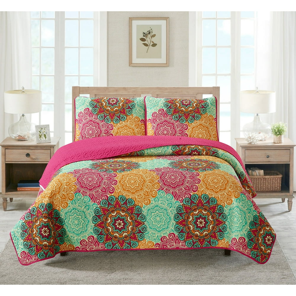 Barefoot Bungalow Topanga Bohemian Floral Orange Quilt Set - Walmart.com