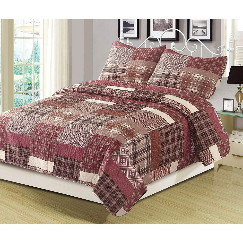 King Quilt Red Plaid Patchwork Bedspread Bedding 3 Piece Set - Walmart.com - Walmart.com