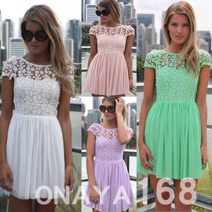 2014 New Fashion Summer Lace Crochet Pleated Chiffon Dress Women Mint Green Lace Cute Dress XS